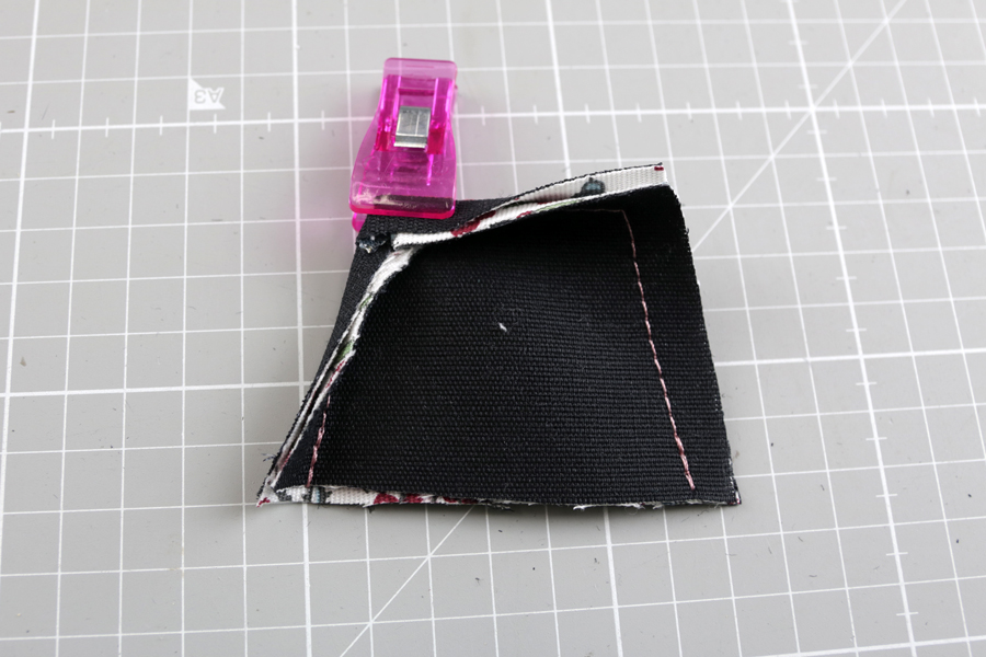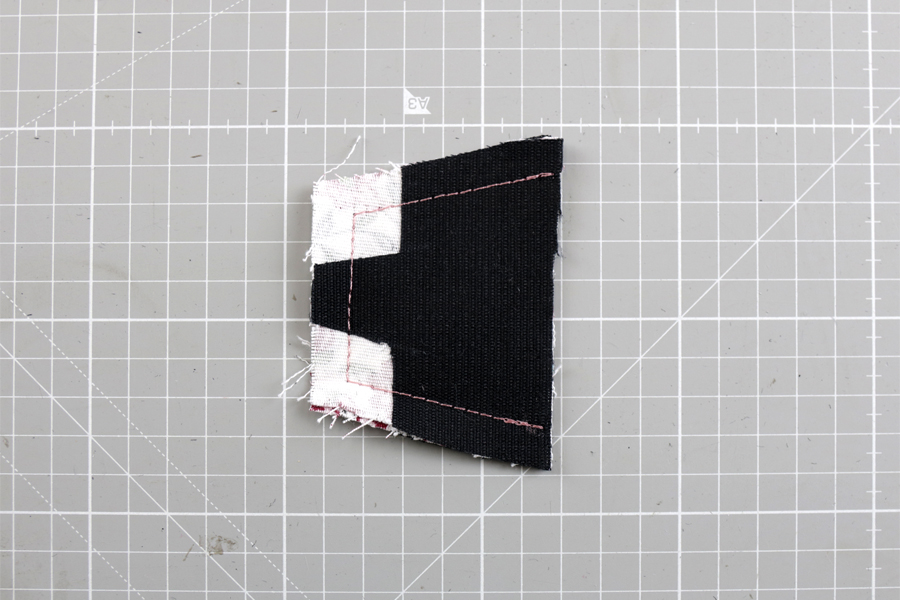 Mamy tu zszyte ze sobą dwie warstwy materiału. Jednak po wywróceniu boczków na prawą stronę, zapasy na szwy złożą się w taki sposób, że w rogach będzie aż 8 warstw – 8 warstw materiału oraz 8 warstw wkładu usztywniającego. To naprawdę sporo!