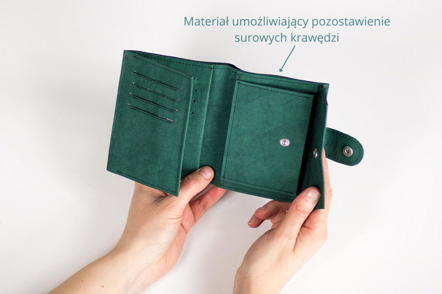 - Niepodwijanie krawędzi – w niektórych materiałach można pozostawić surowe brzegi lub pomalować je farbą do krawędzi. Ta metoda sprawdza się jednak głównie przy pracy ze skórami i jej substytutami, bardzo rzadko będziemy korzystać z niej przy tkaninach.